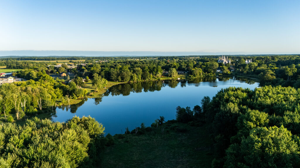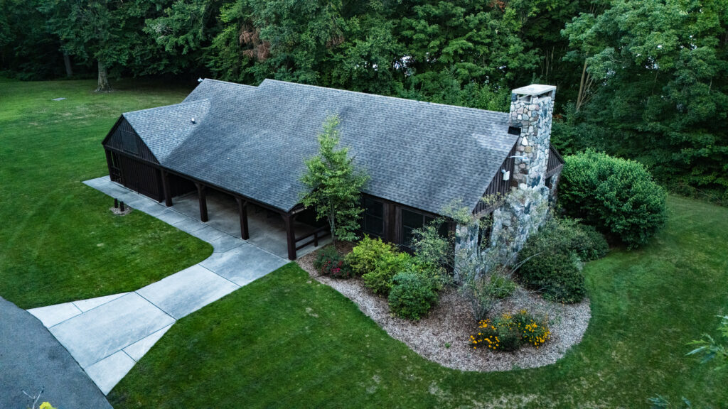 Lion on top of Grand Castle Apartments with sun backlighting lion to create silhouette