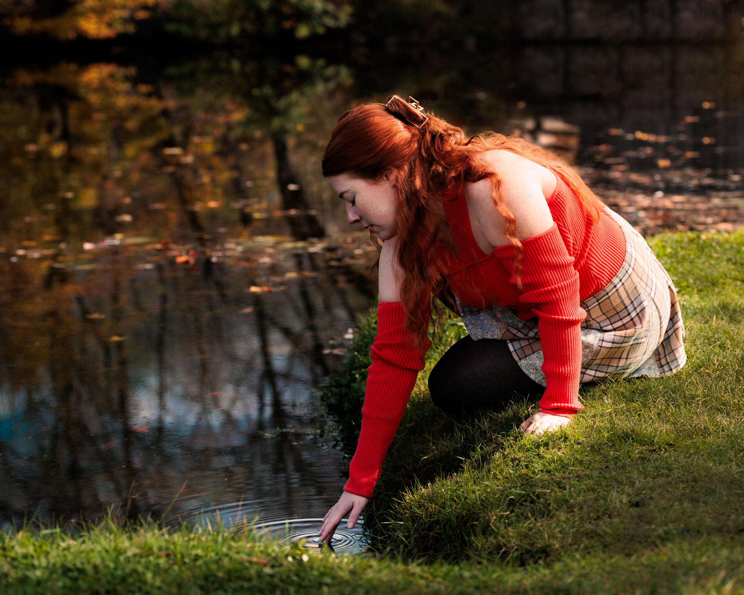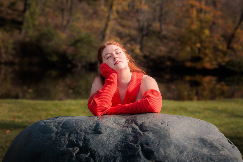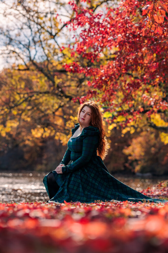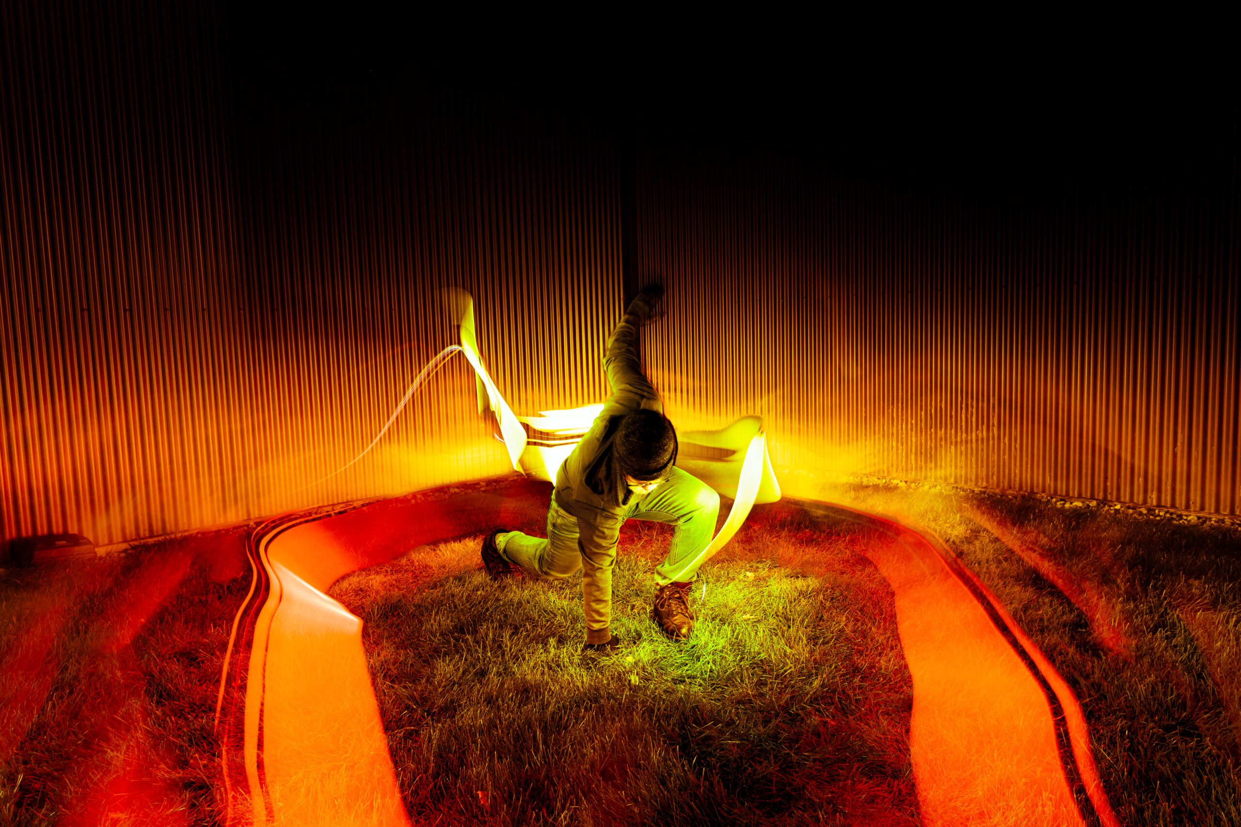Dark Portrait man hugging knee while looking down, lighting from left upper